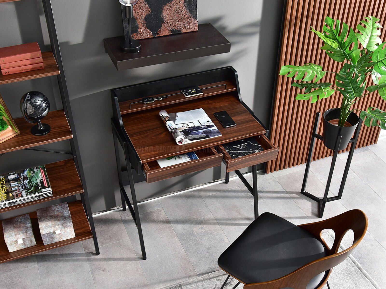 PC asztal Borge (sötét dió + fekete)