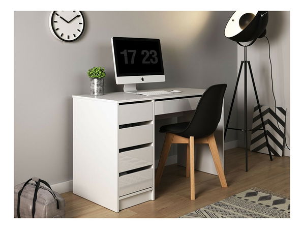 elülső rész és a korpusz 16 mm-es laminált forgácslapból - ellenáll a nedvességnek és a karcolásnak, test ABS éllel, magasfényű fiókelőlapok vezetősíneken, fogantyú nélküli rendszer, univerzális asztal - a fiókok balra vagy jobbra rögzíthetők