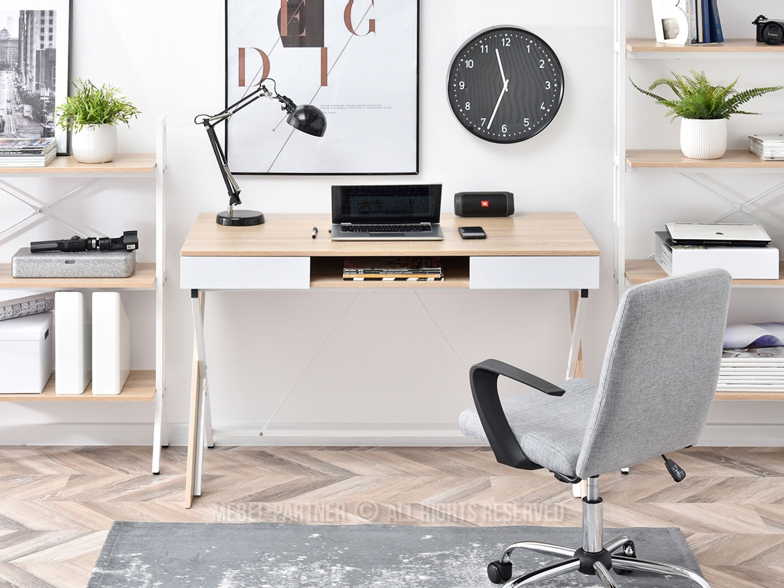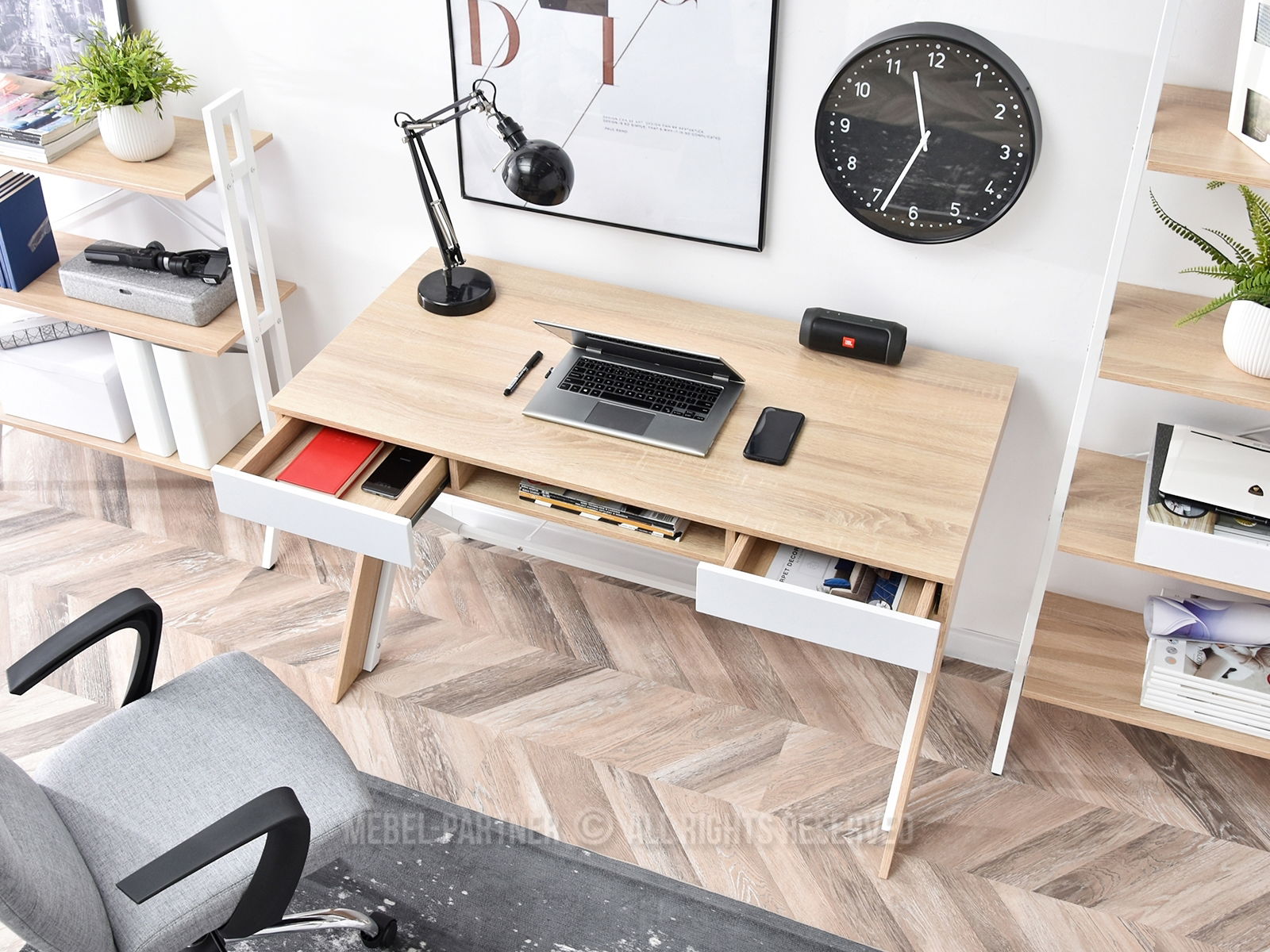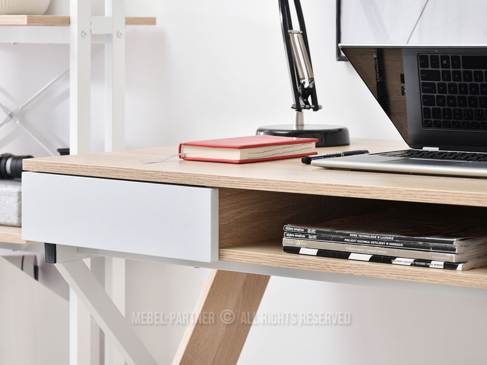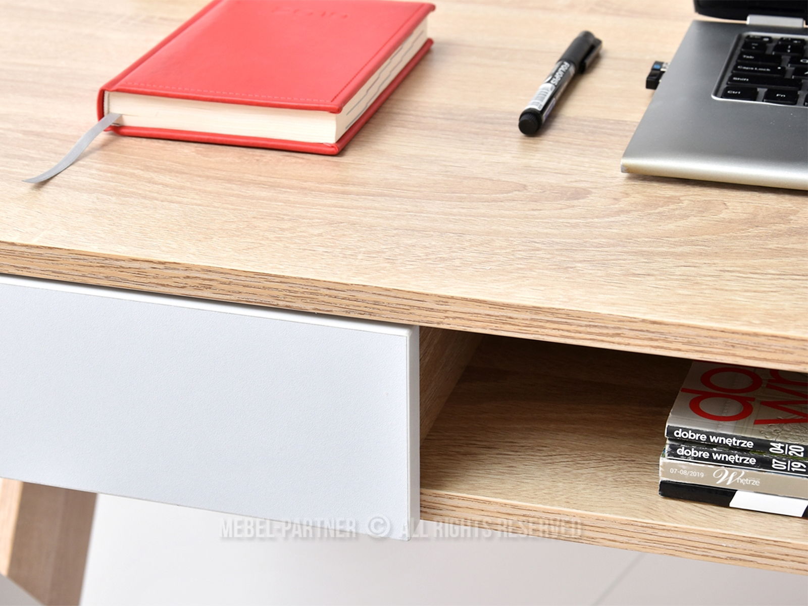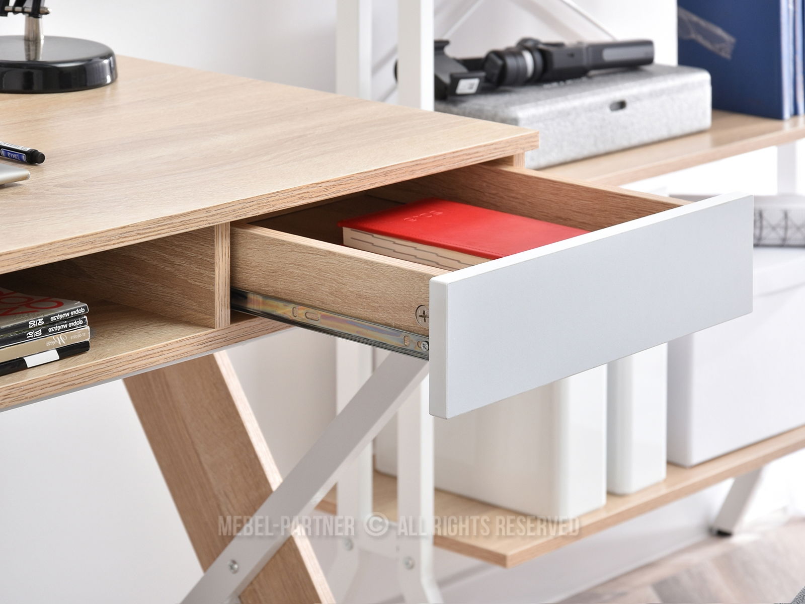 téglalap alakú bútorlap, nyitott polcokkal, fiókokkal