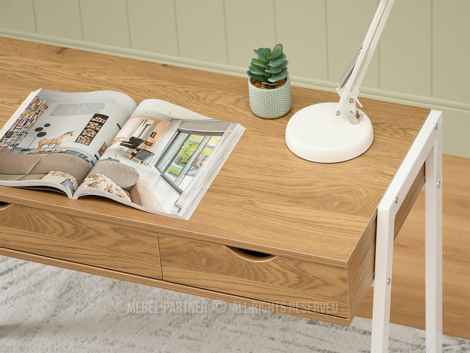 PC asztal Land (tölgy + fehér)