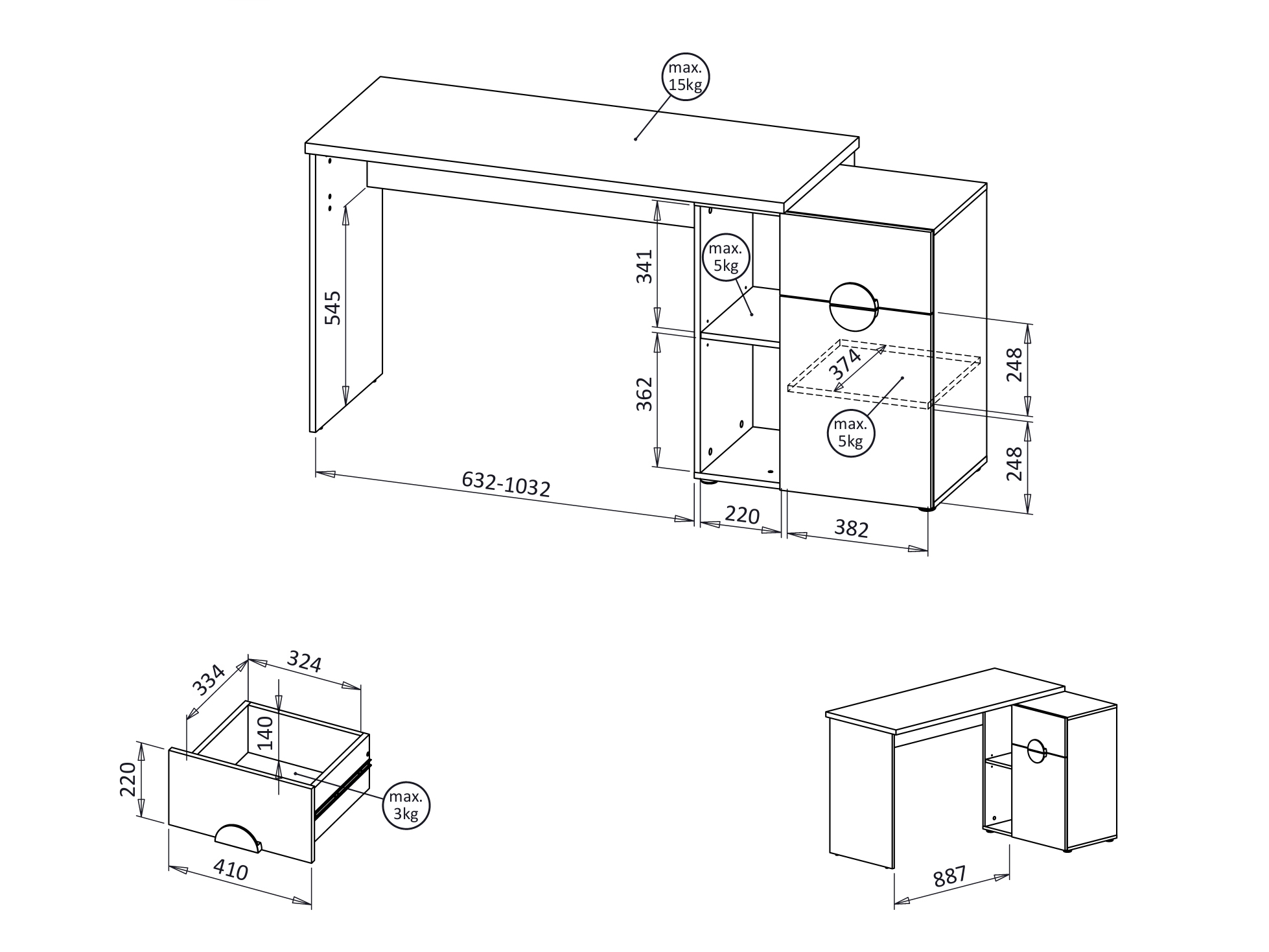 A bútor és a fiók hátoldala 2,5 mm vastag HDF lemezből készült.
