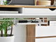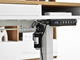 téglalap alakú bútorlap, nyitott polcokkal, fiókkal, deszka alatti segédpolccal