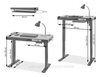 A munkalap minimális mérete 120 x 80 cm legyen. Akár csak rövid időt tölt az íróasztalánál, akár napi 8 órát, a megfelelő magasság elengedhetetlen. Az asztalnál ülni nem természetes testhelyzet az emberi test számára. Az ideális 70-80 cm. A szék ülőfelülete és a munkalap felső része közötti rés betartása 22-31 cm legyen. Nem kevésbé fontos gondolni arra, hogy a monitor vagy laptop legalább 60 cm távolságra legyen a szemtől.