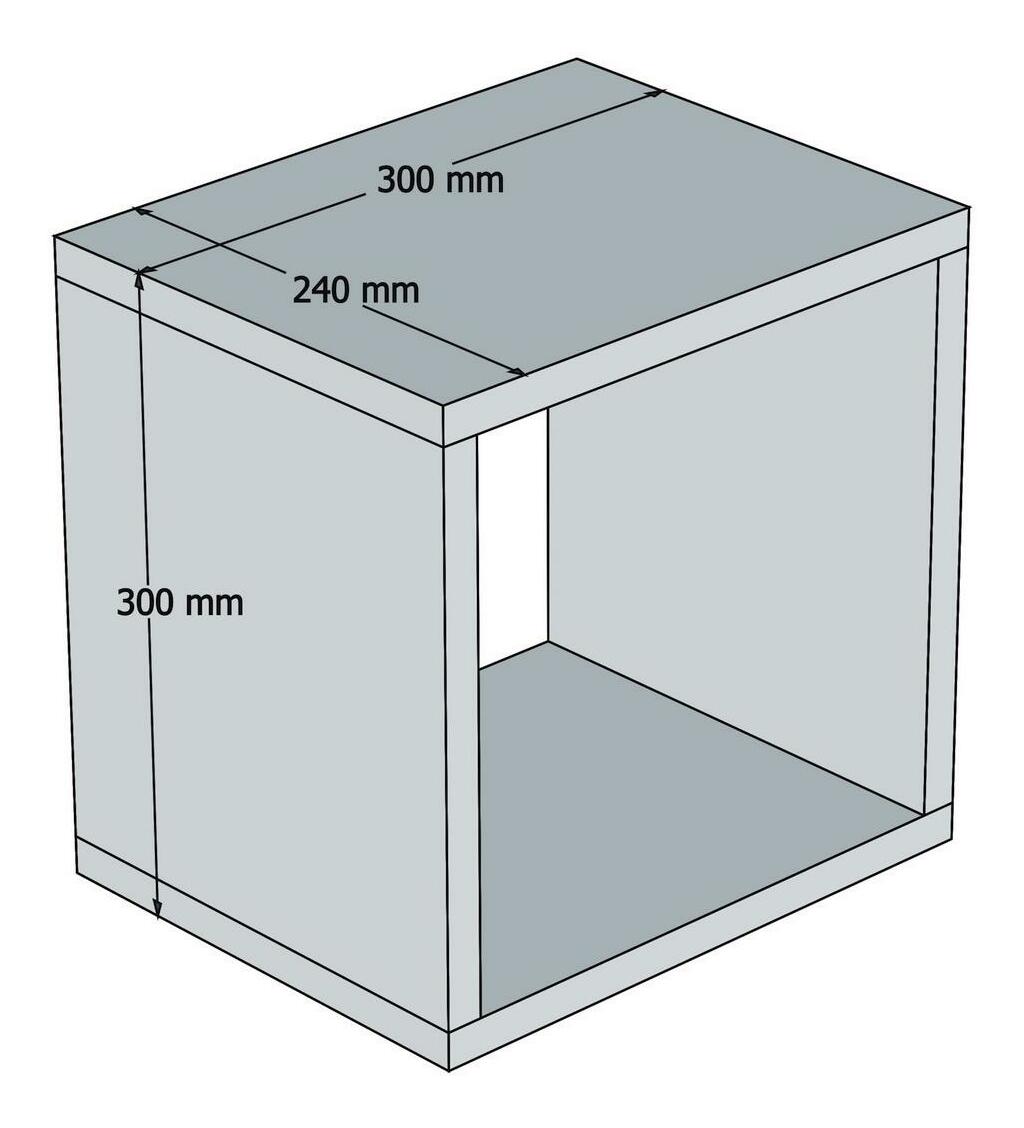 vastagság: 18 mm, szélesség: 30 cm, magasság: 24 cm, mélység: 30 cm