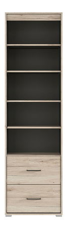 MutasdA Ronse polc 4 nyitott polc formájában kínál helyet a dolgok bemutatására. 2 fiókot használhatja a kisebb tárgyak tárolására.