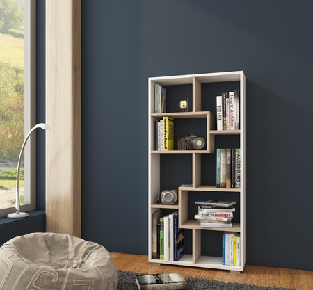 Polcos szekrény Domino C keskeny fehér + világos sonoma tölgy