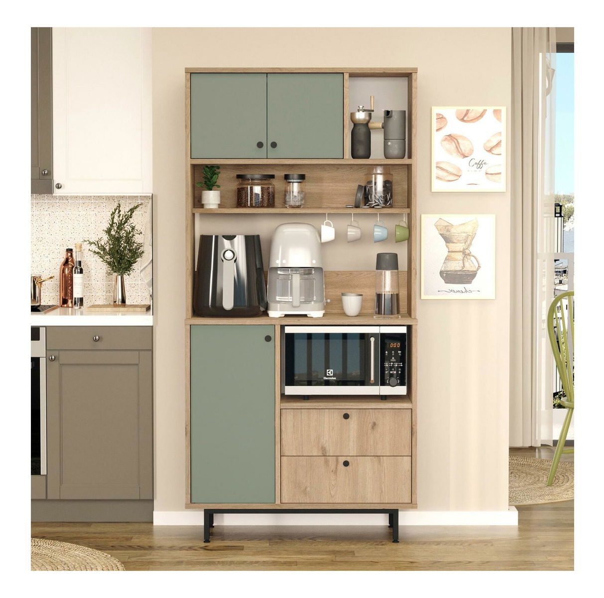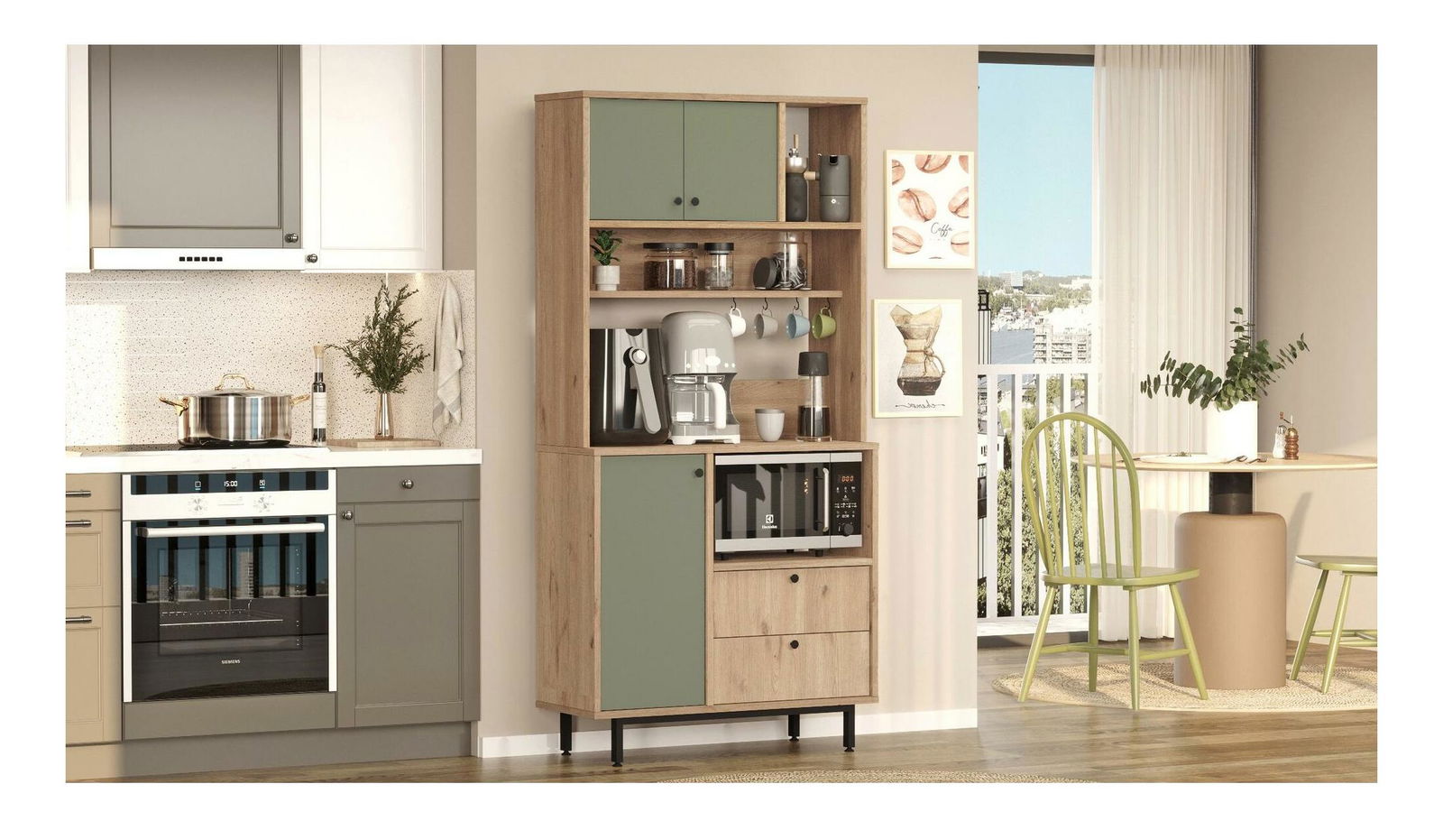 Polcos szekrény Rebutia 4 (tölgy + zöld)