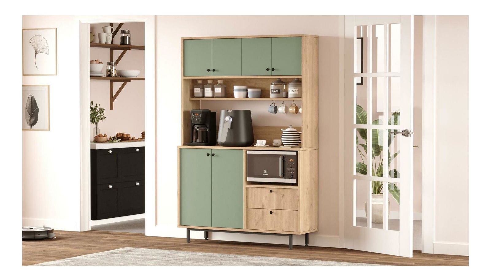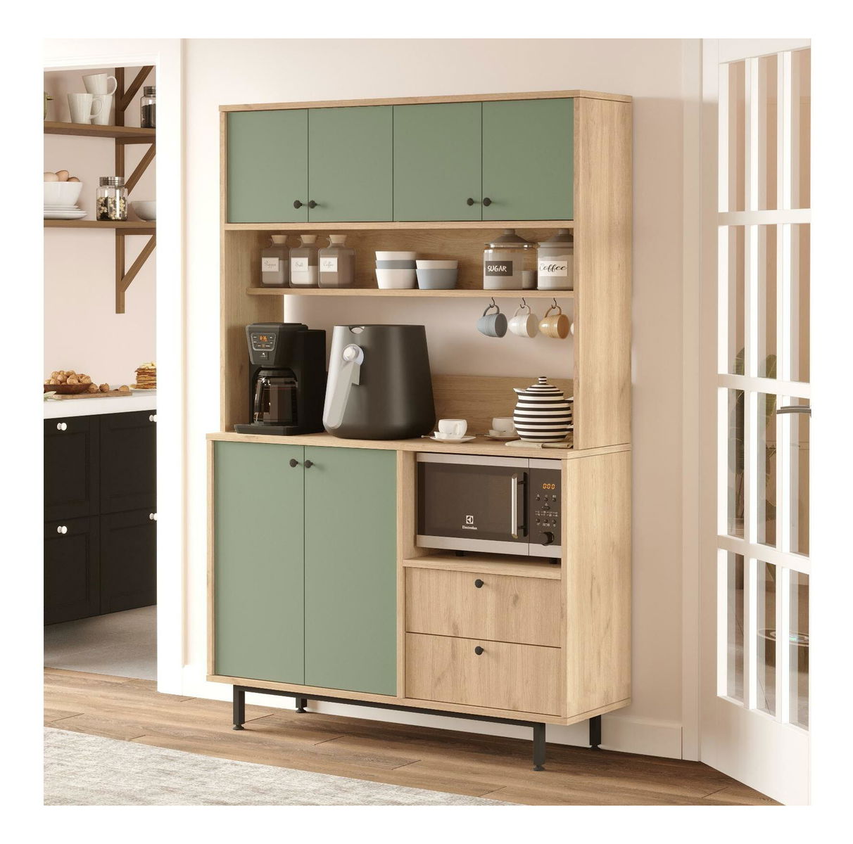 Polcos szekrény Rebutia 5 (tölgy + zöld)
