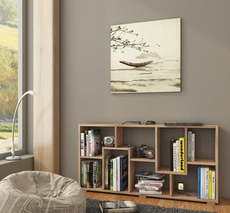 Az egyik legmegfelelőbb lehetőség az állítható polcokkal ellátott készletek. Így ideális helyet alakíthat ki a különböző méretű könyvek számára, és érdekesnek tűnik a polcmagasság aszimmetriája.