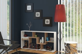A polcok változtathatóak, kompaktak és bármilyen belső térben elhelyezhetők. Gyerekek számára is alkalmasak, hiszen minden szükséges kéznél van a nyitott polcokon, és nincs sérülésveszély, mint például az üveges vitrinajtóknál. A vitrin főként a nappaliba készült, ahol leggyakrabban látogatókat fogad. Ugyanakkor az irodában is ugyanolyan hatékonyan elhelyezhető.