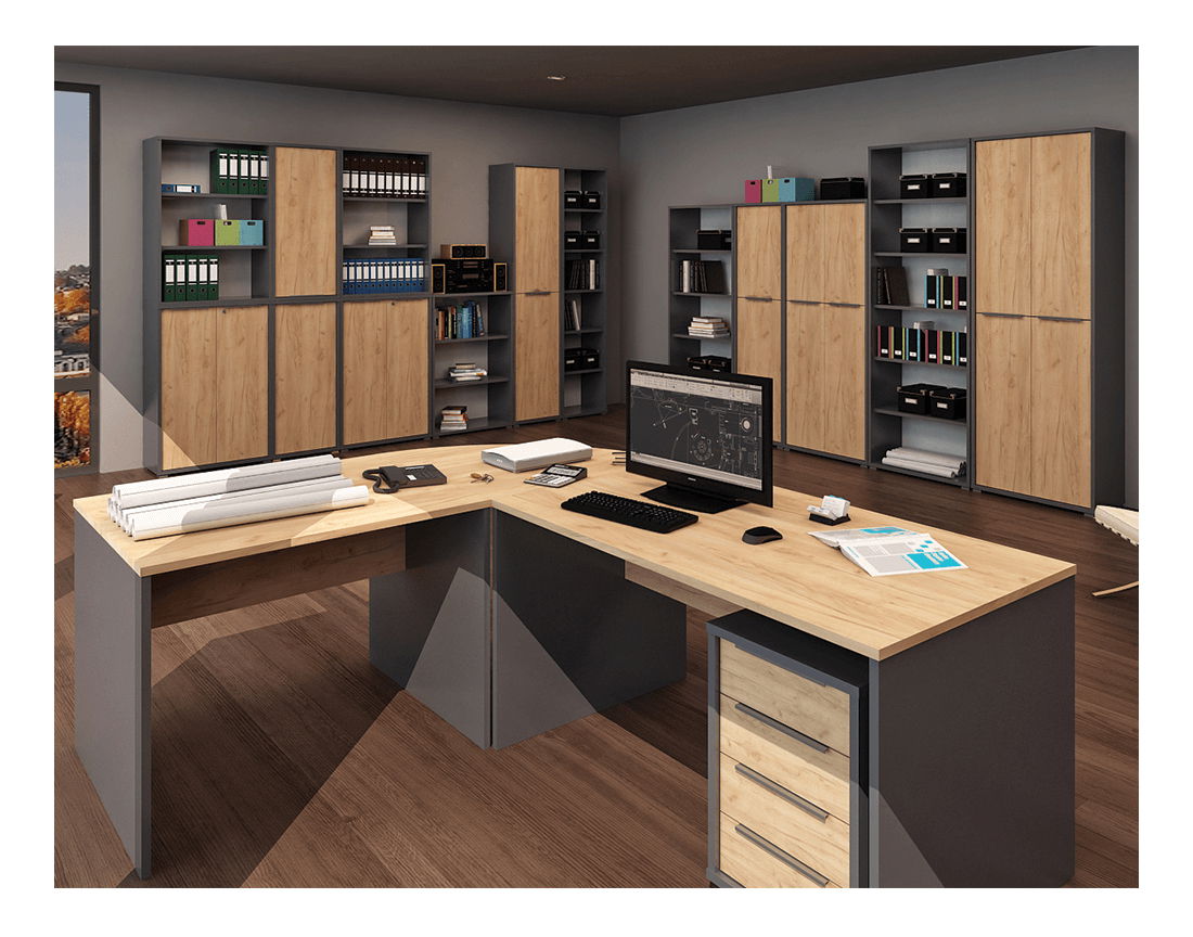 Polcosszekrény Hamila NEW TYP 06 (grafit + artrisan tölgy)