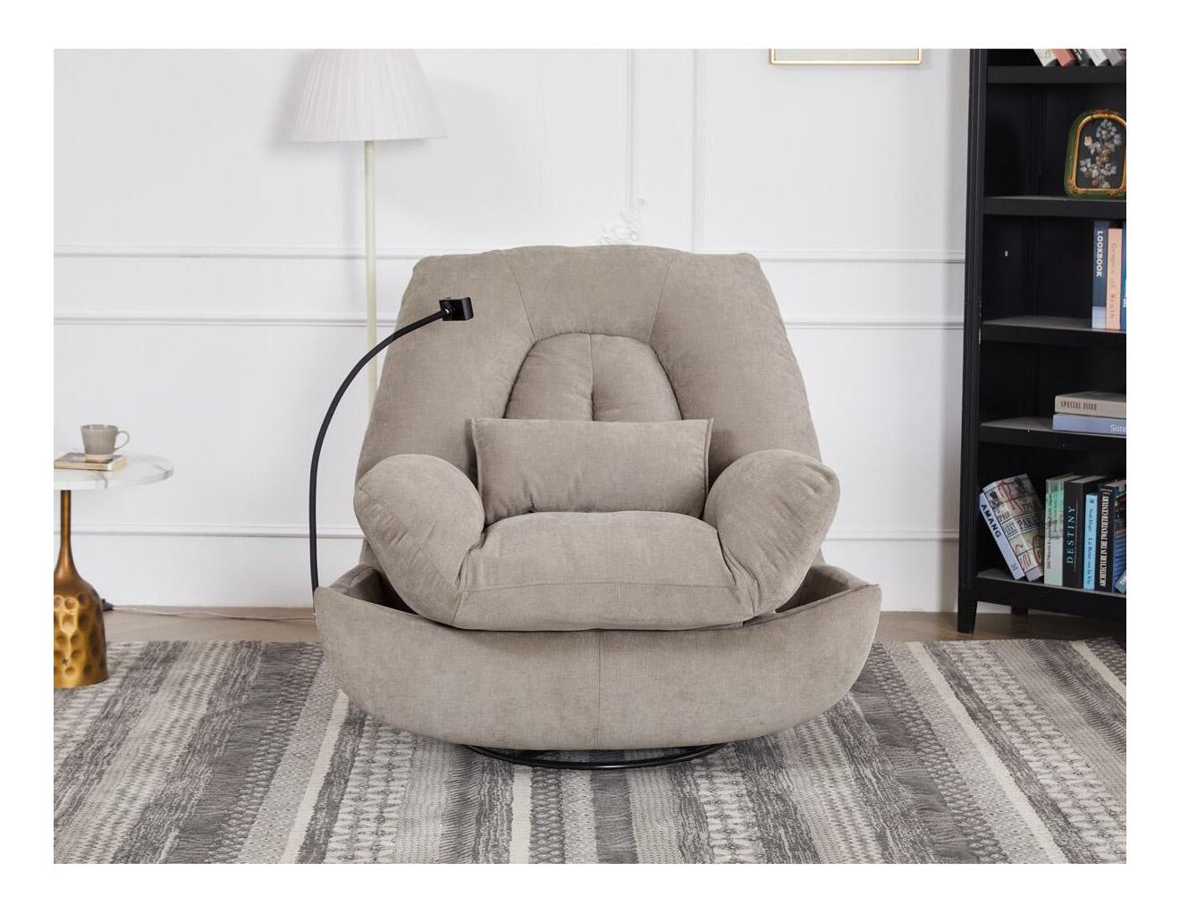 MutasdEz a relaxfotel egy prémium bútordarab, amelyet úgy terveztek, hogy a pihenés élményét a következő szintre emelje. Kiváló minőségű, magával ragadó szarvasgomba árnyalatú anyagból készült, ez a dizájner relaxfotel nemcsak kényelmet kínál, hanem számos olyan funkciót is integrál, amelyek fokozzák a kényelmet és az élvezetet. Íme a figyelemre méltó jellemzőinek lebontása: 1) Mobiltelefon-tartó: A kanapén kényelmesen elhelyezett mobiltelefon-tartó biztosítja, hogy eszköze mindig kéznél legyen, akár pihen, akár szórakozási lehetőségeket élvez. 2) Tárolódoboz: Búcsút inthet a rendetlenségnek a beépített tárolódobozzal, amely bőséges helyet biztosít távirányítók, magazinok, harapnivalók vagy bármilyen más szükséges dolog tárolására, így élettere rendezett és szervezett marad. 3) 240° balra és jobbra forgatható funkció: Élvezze a sokoldalúságot és a rugalmasságot a kanapé lenyűgöző 240 fokos forgathatóságával, amely lehetővé teszi, hogy az Ön igényei szerint tájolja. 4) 30°-os ringató funkció: Tapasztalja meg a gyengéd ringató mozgást a jobb ellazulás és kényelem érdekében, amely tökéletes egy hosszú nap utáni kikapcsolódáshoz, vagy egyszerűen csak egy kis pihenéshez. 5) 160 kg-os teherbírás: Robusztus, 160 kg-os teherbírásával tartósságot és stabilitást kínál, így hosszú távú élvezetet biztosít Önnek és vendégeinek. Összességében a kanapé zökkenőmentesen ötvözi a dizájnt és a funkcionalitást, luxus és technológiailag fejlett ülési megoldást kínálva a modern életterekbe. Akár vendégeket fogad, akár csak kikapcsolódásra vágyik, ez a kanapé úgy lett kialakítva, hogy felülmúlja az elvárásait.