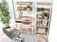 nyitott polcokkal, felső polccal, fiókokkal
