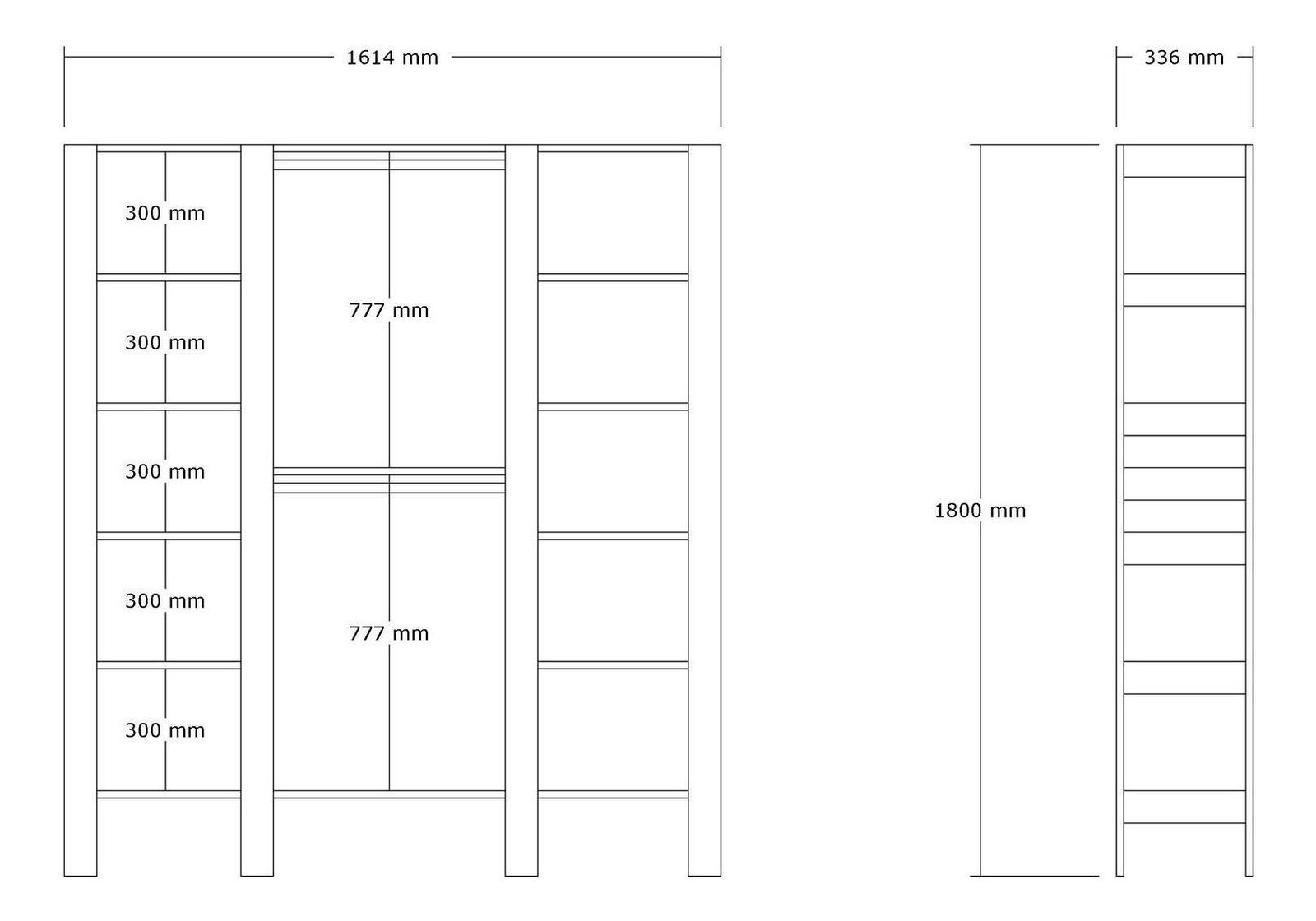 vastagság: 18 mm, szélesség: 161,4 cm, magasság: 180 cm, mélység: 33,6 cm