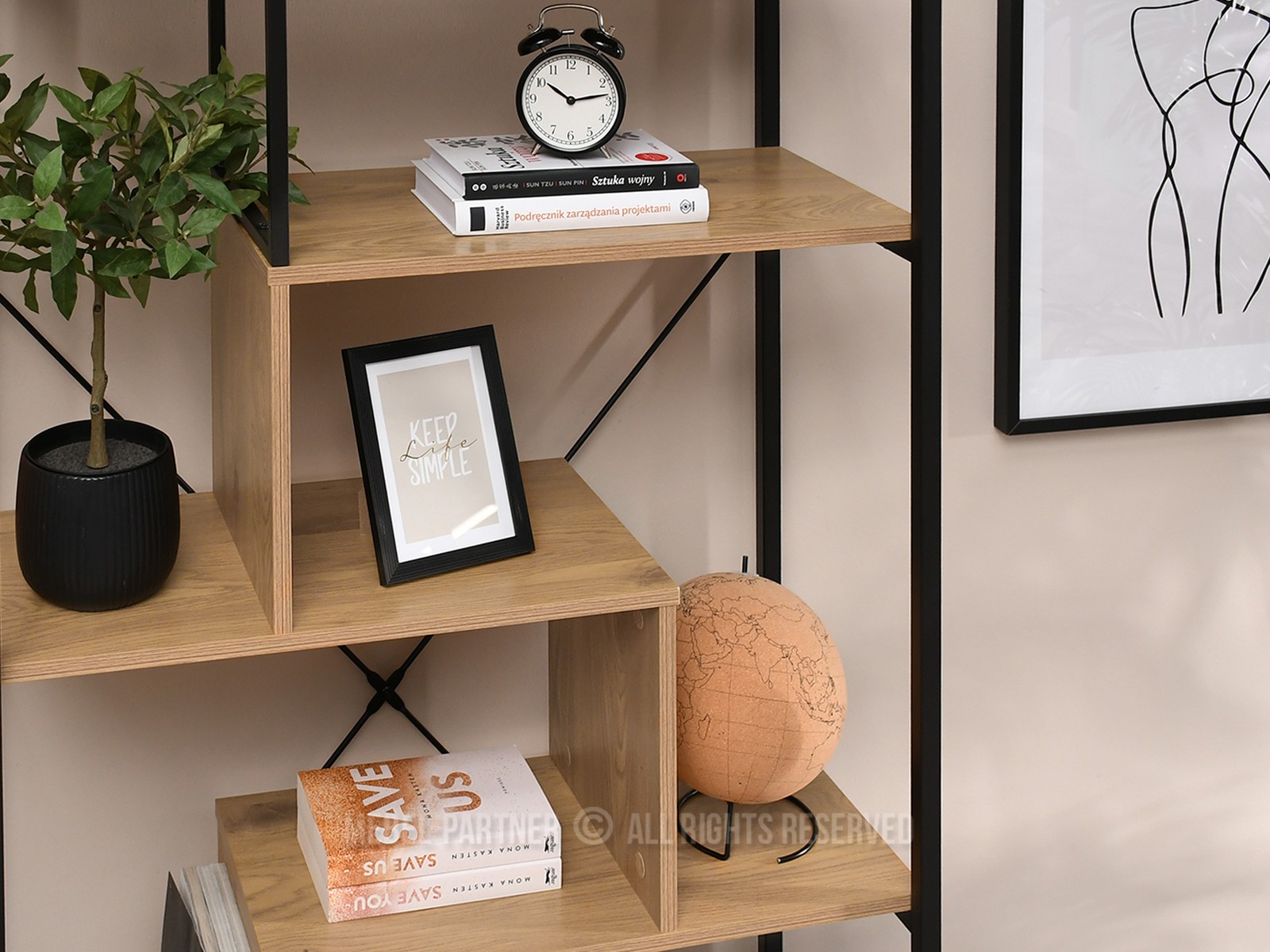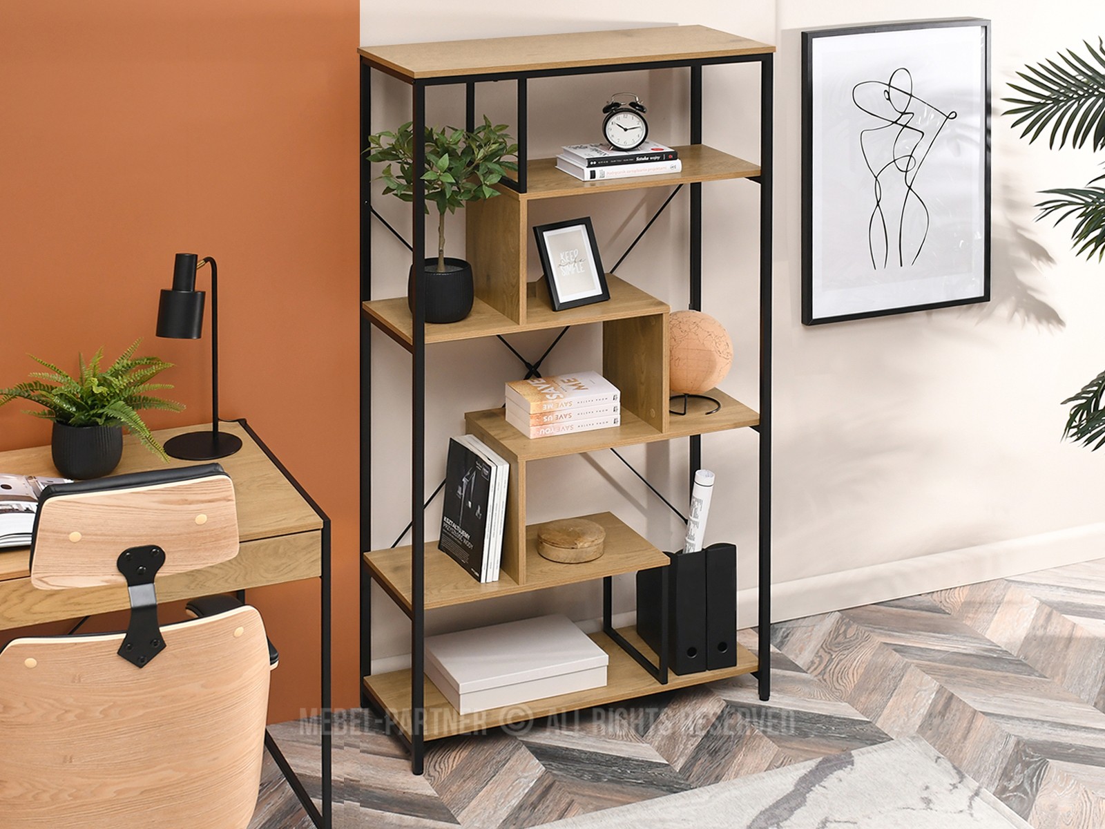 Regál Harp B (tölgy + fekete)