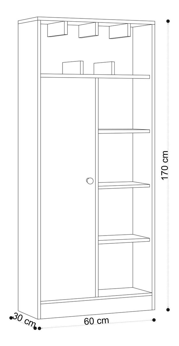 vastagság: 18 mm, szélesség: 60 cm, magasság: 30 cm, mélység: 170 cm