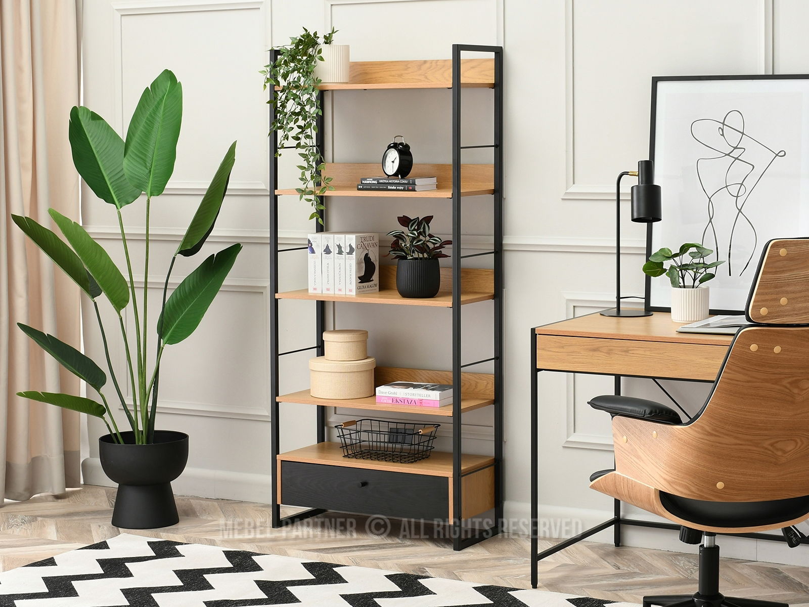 nyitott polcokkal, zárt polcokkal