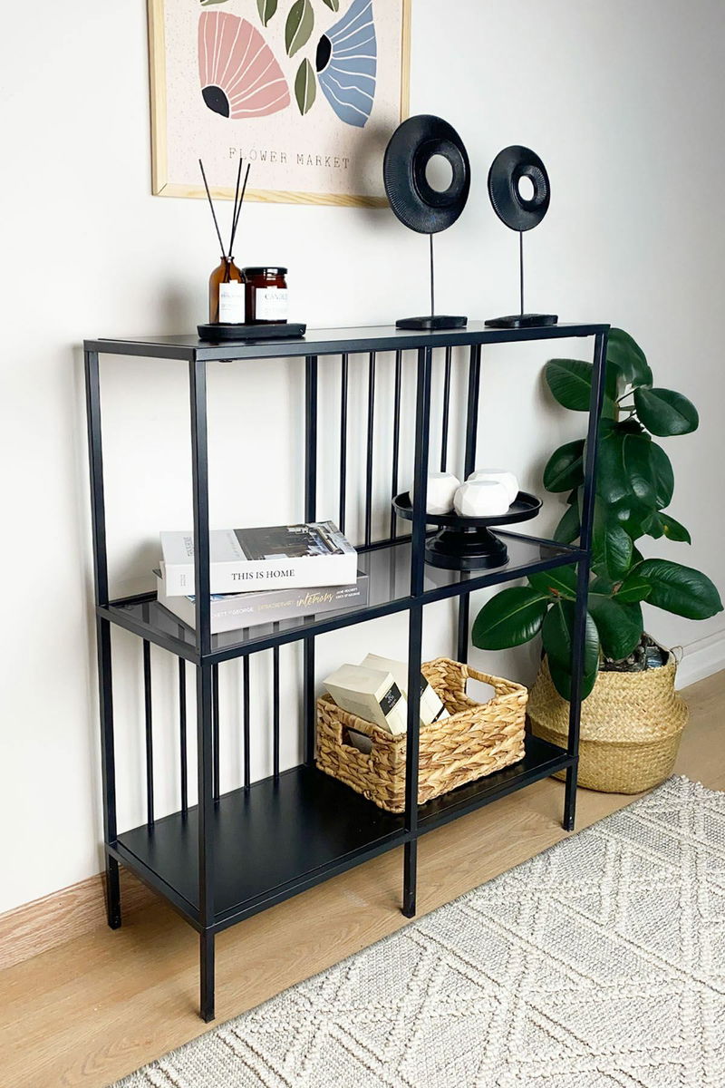 Regál Savoj (fekete + üveg)