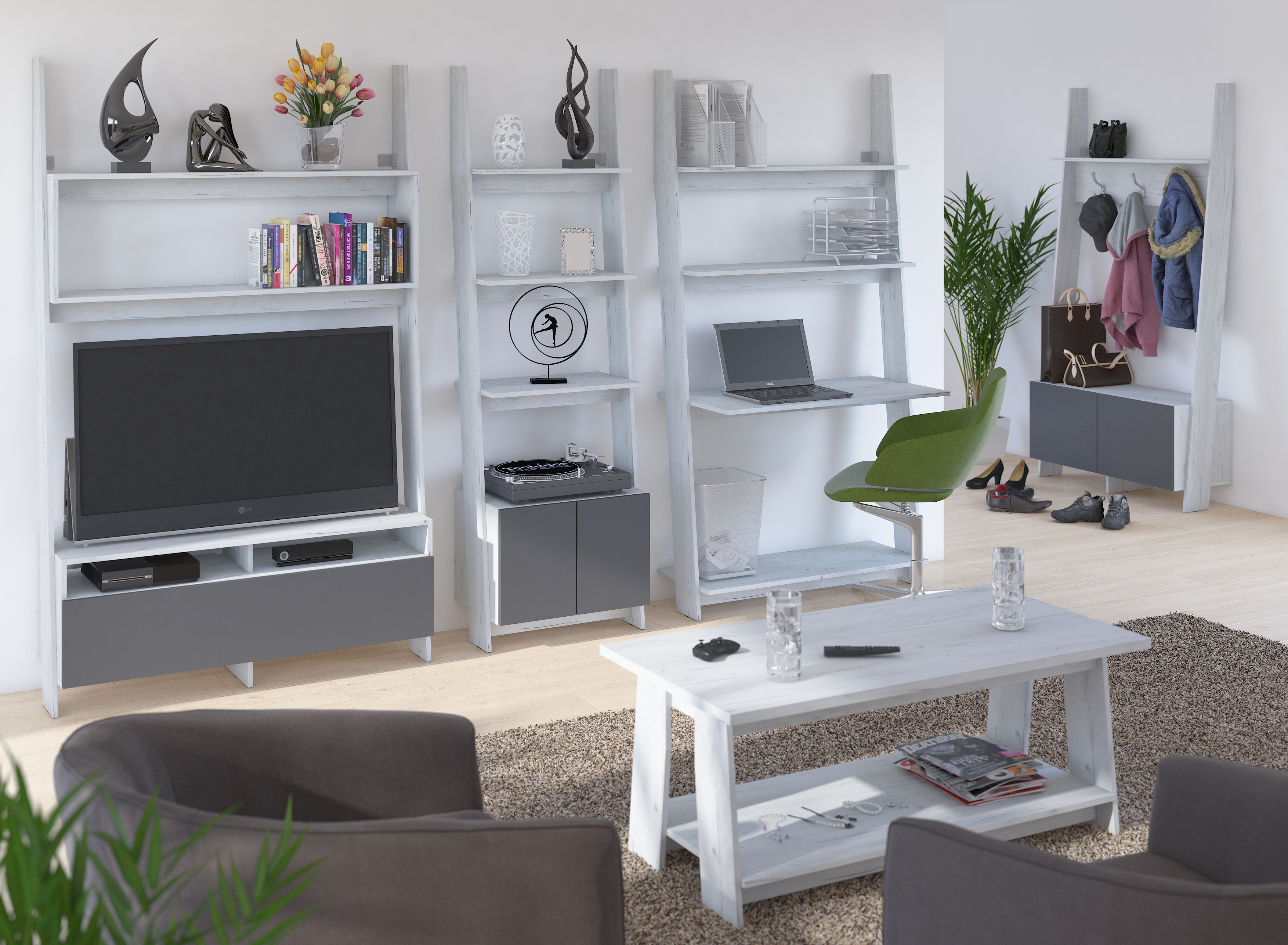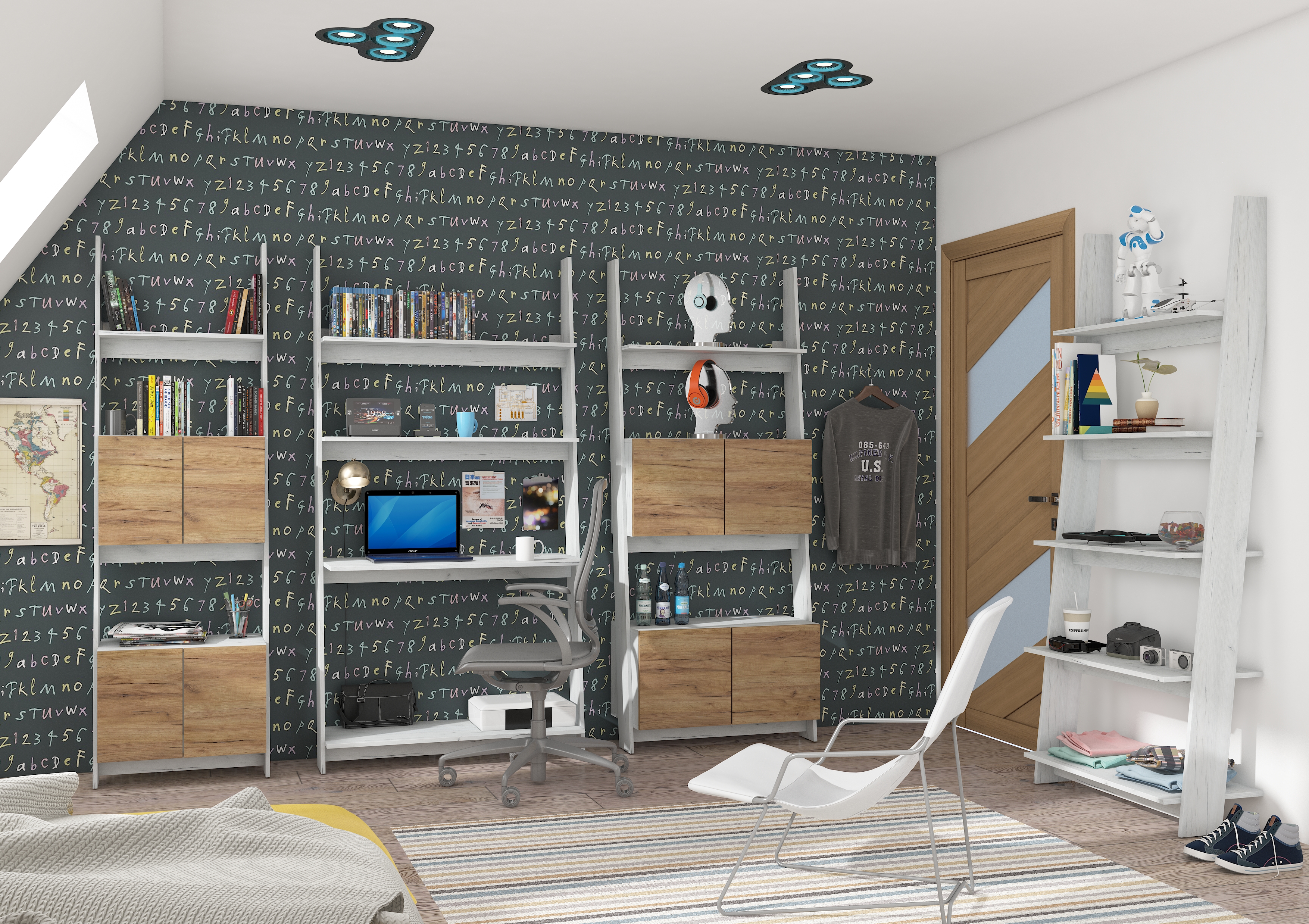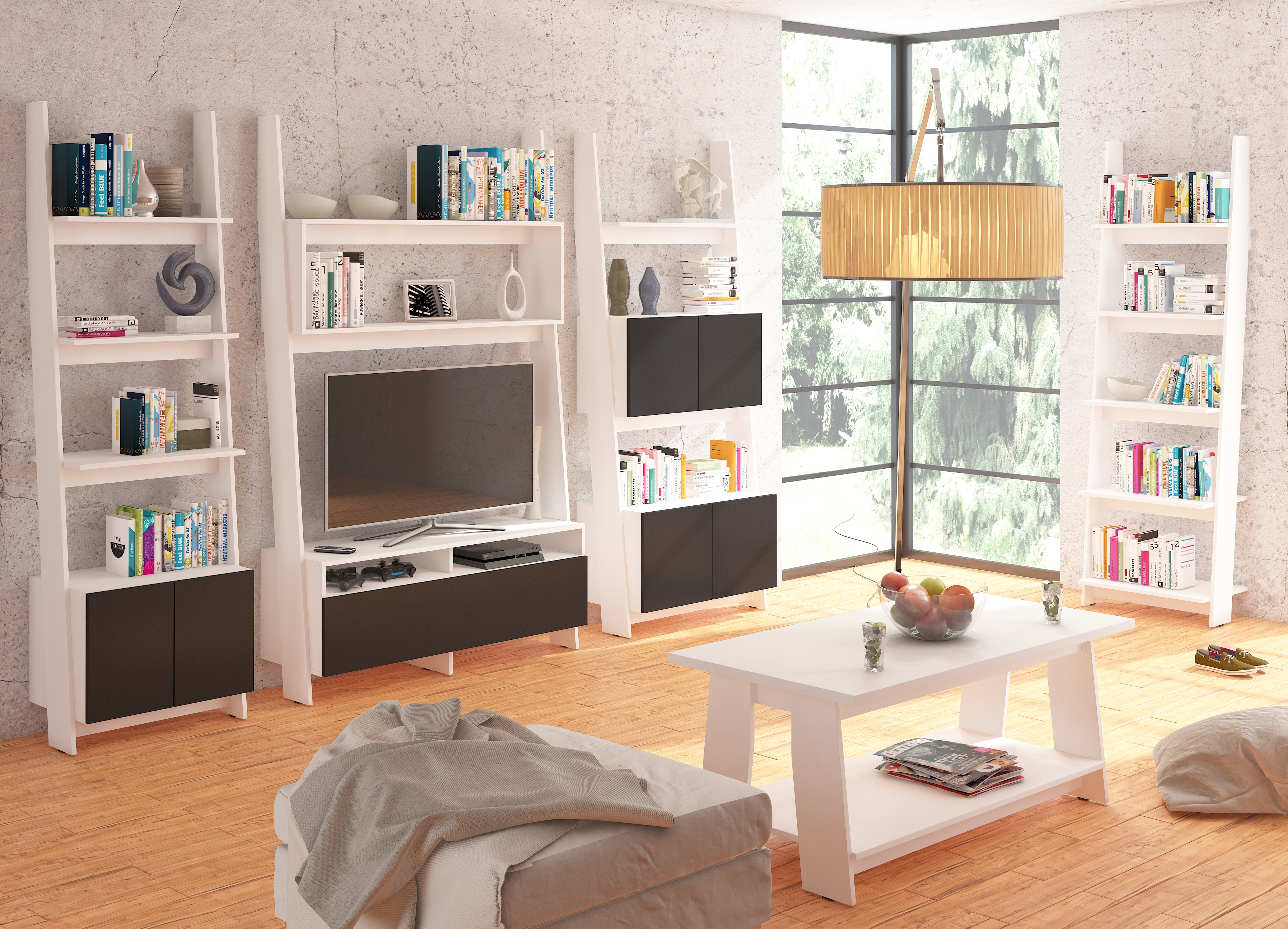 Regál szekrénnyel 80 cm 2 Raul (fehér + fényes fekete)
