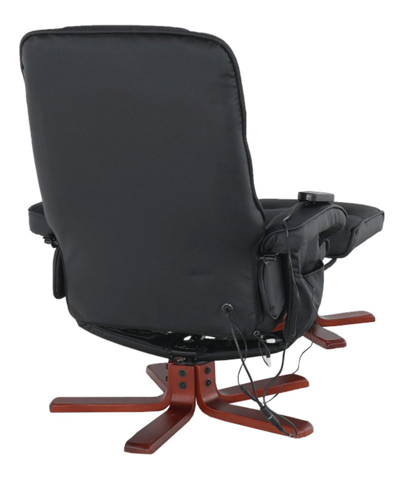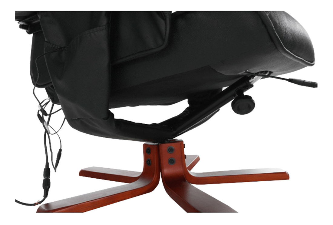Az energiahiány, a stressz, a fáradtság, a hátfájás, a nyaki gerinc vagy a zsibbadt lábak néha mindenkit zavarnak. Az Aurelia pihentető forgószék mechanikus pozicionálással és állítható háttámlával rendelkezik. Az ülés alatti kar segítségével engedje le a háttámlát kényelmesebb helyzetbe. A háttámla helyzetének beállításakor az ülés szinkronban halad előre, így az ülés mélysége 82 cm-ről kényelmes 115 cm-re nő. Kényeztesse magát masszázzsal akár nyolc masszázsponton. A szék előnye a nagy teherbírás is. Minőségi anyagokból, fekete hasított bőrből és fekete ökobőrből készült. A fa szerkezet cseresznye színárnyalatú. Szeresse meg a relaxációt és egy segítőkész masszőrt az Aurelia relax fotel formájában.