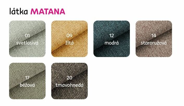 A Matana szövetet jellegzetes, durva szerkezet jellemzi, amely jellegzetes karaktert ad a textíliának. Ez az anyag széles színválasztékban kapható, a lágy pasztell tónusoktól az intenzíven élénk árnyalatokig, így ideális választás különféle tervezési projektekhez. A Matala szövet jellegzetessége a foltos hatása is, amely a különböző árnyalatokat ötvözi a gazdag, sokszínű megjelenés érdekében. Esztétikai tulajdonságai mellett a Matana szövet puha tapintású is, köszönhetően az alapnak, ami további térfogatot és erőt ad neki.