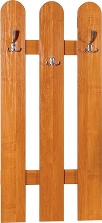 MutasdHárom hosszanti deszkára rögzített három kampóval ellátott akasztópanel.
