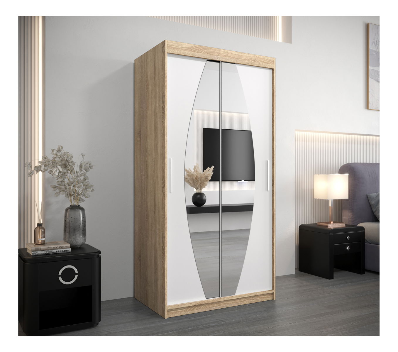 Ruhásszekrény 100 cm Eclipse (szonoma tölgy + matt fehér)