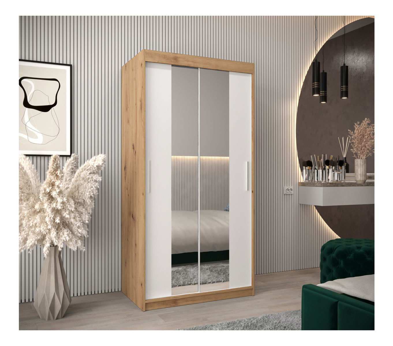 Ruhásszekrény 100 cm Toki 1 (artisan tölgy + matt fehér)