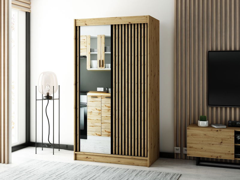 Ruhásszekrény 120 cm Ladonna 2 (matt fekete) (tükörrel)