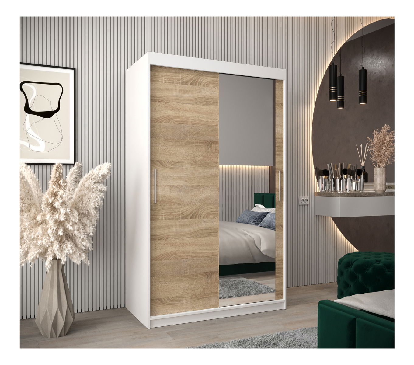 Ruhásszekrény 120 cm Toki 2 (matt fekete + szonoma tölgy)