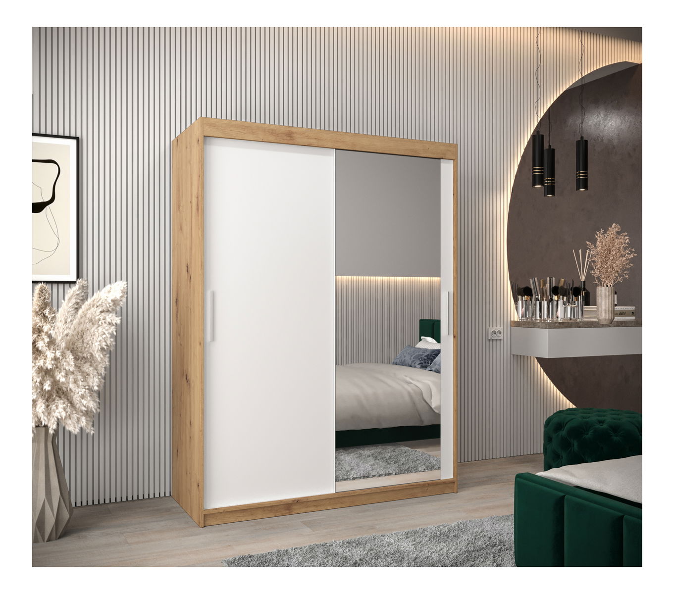 Ruhásszekrény 150 cm Toki 2 (artisan tölgy + matt fehér)