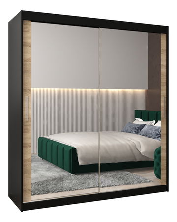Ruhásszekrény 180 cm Toki 3 (matt fekete + szonoma tölgy)