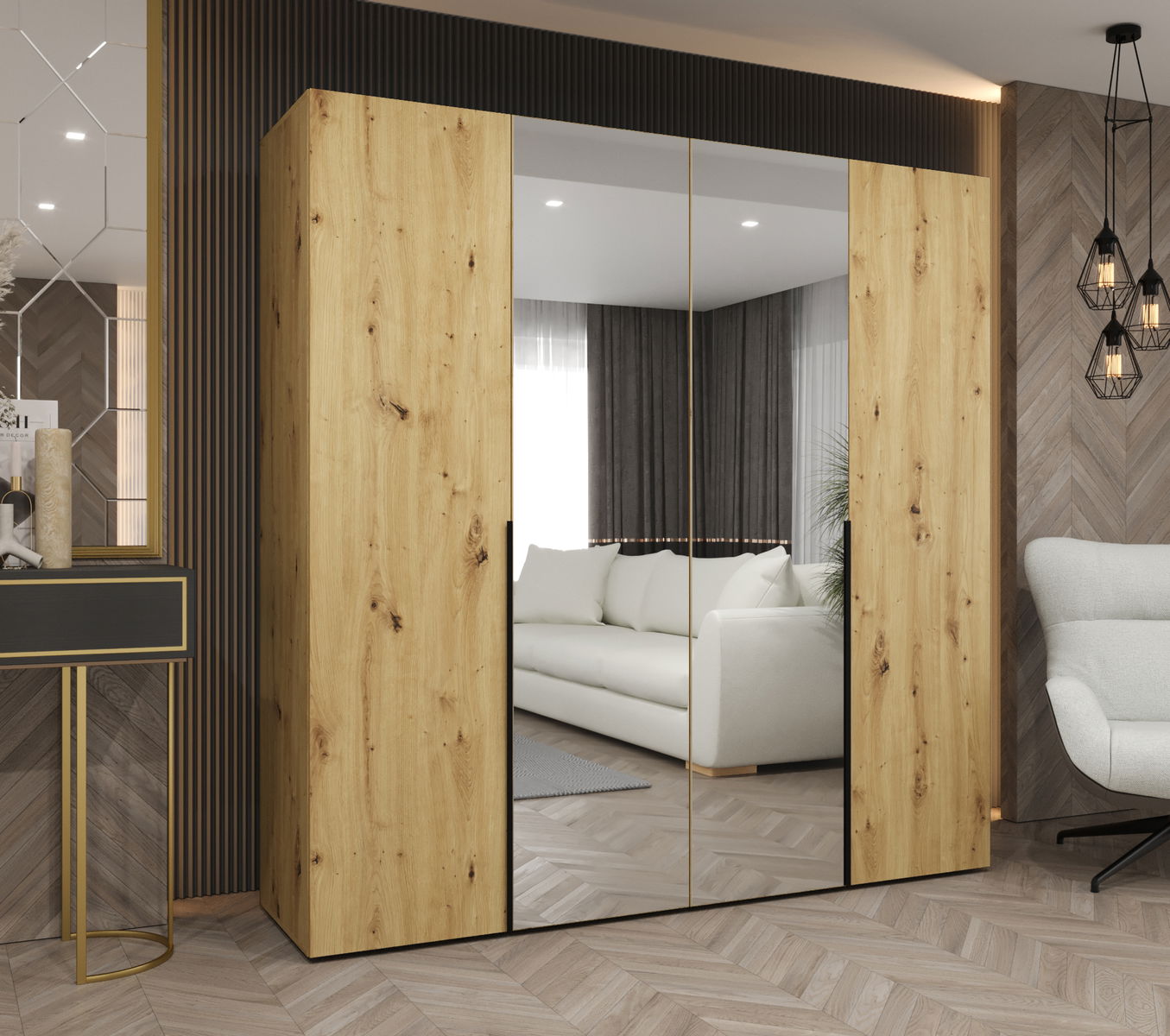Ruhásszekrény 200 cm Alice 2 (artisan tölgy + fekete)