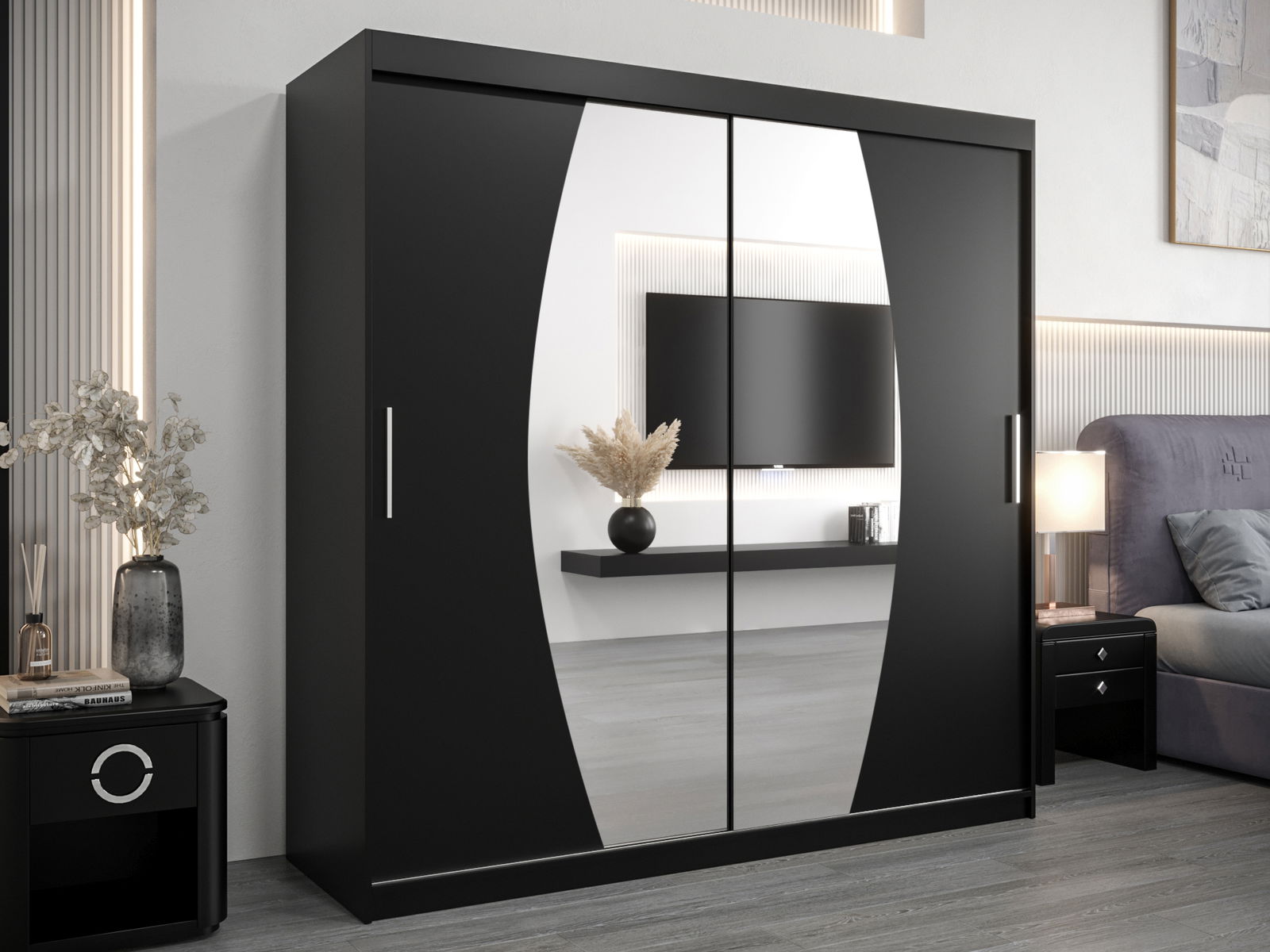 Ruhásszekrény 200 cm Eclipse (matt fekete + matt fekete)