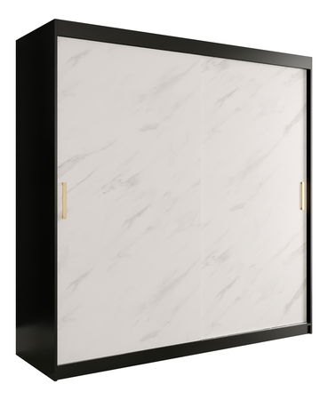 Ruhásszekrény 200 cm Marbelo T (matt fekete + fehér márvány)