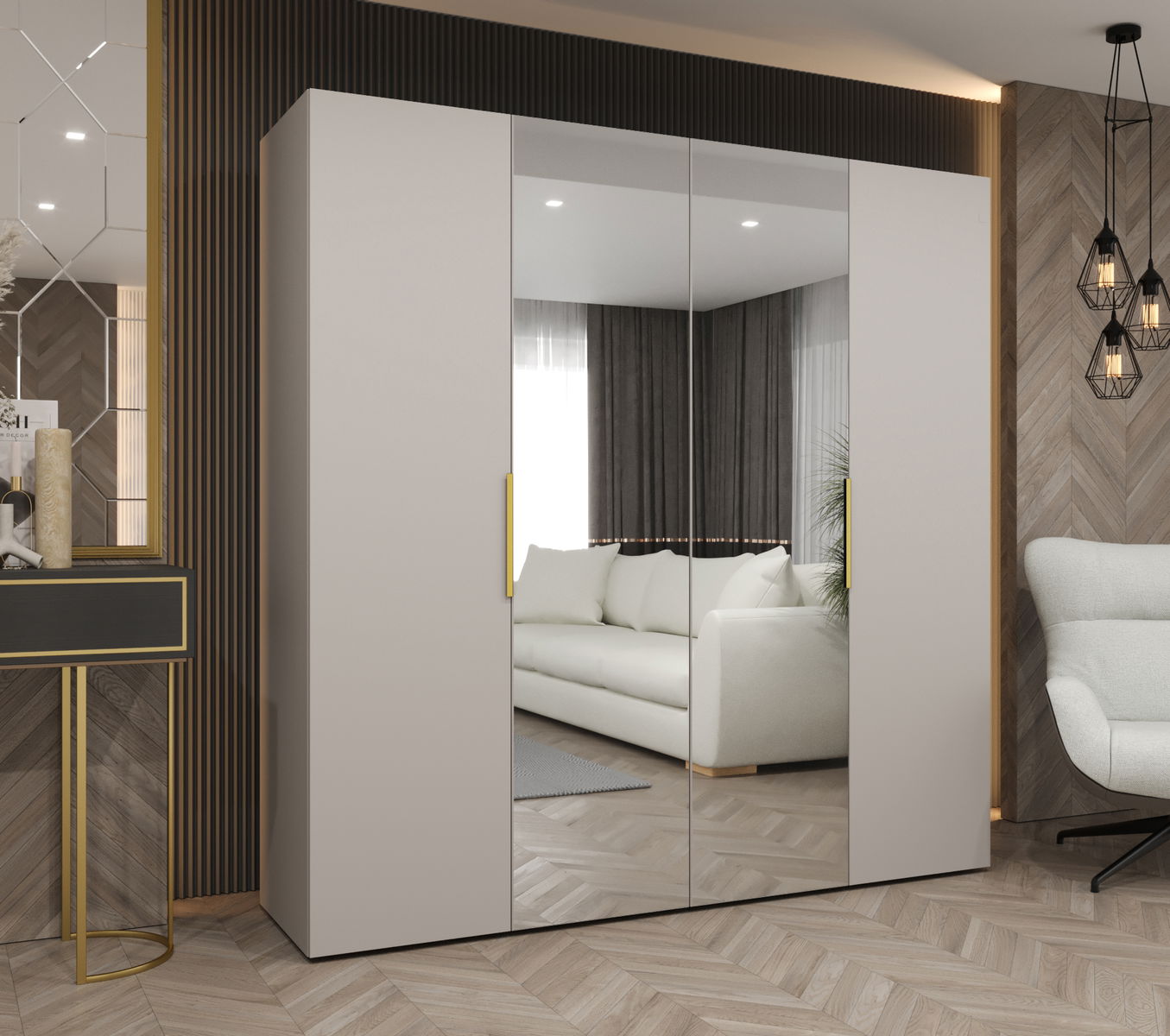 Ruhásszekrény 200 cm Mirabella 2 (kasmír + arany)