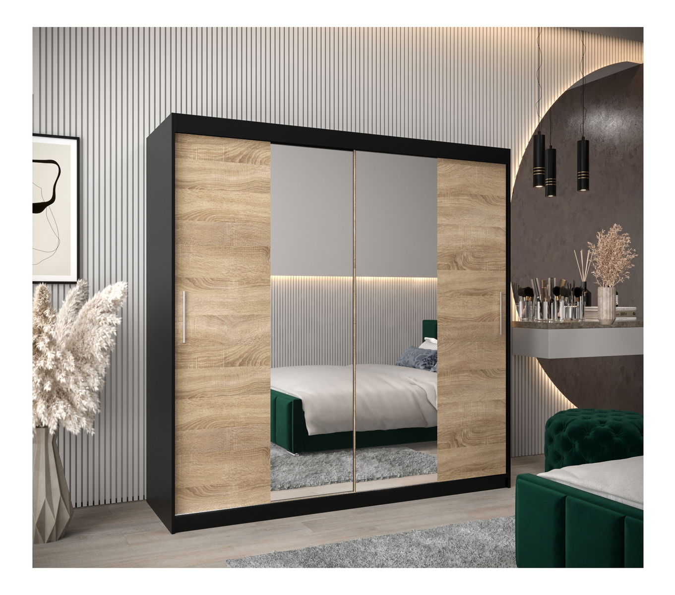 Ruhásszekrény 200 cm Toki 1 (matt fekete + szonoma tölgy)