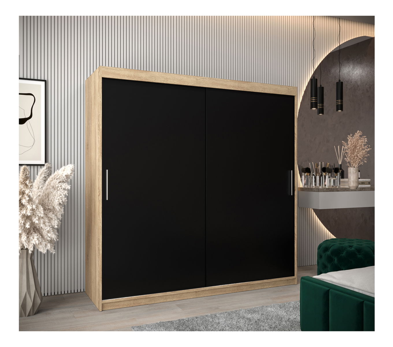 Ruhásszekrény 200 cm Toki (szonoma tölgy + matt fekete)