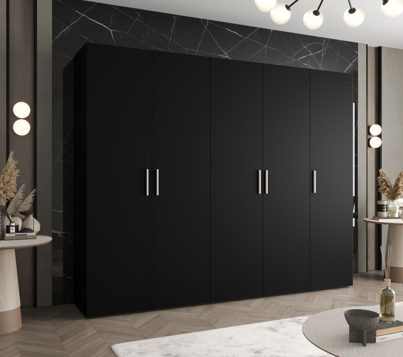 Ruhásszekrény 250 cm Borry 1 (fekete + ezüst)