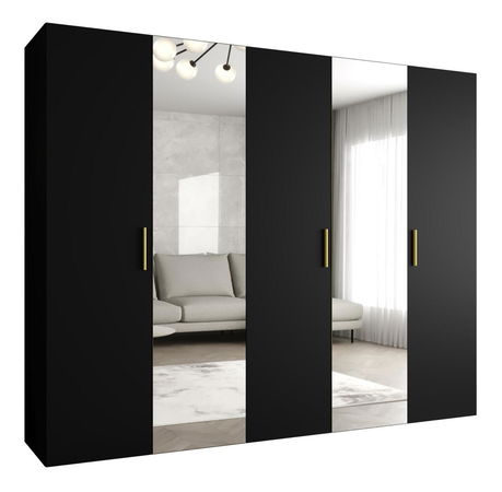 Ruhásszekrény 250 cm Borry 2 (fekete + arany)
