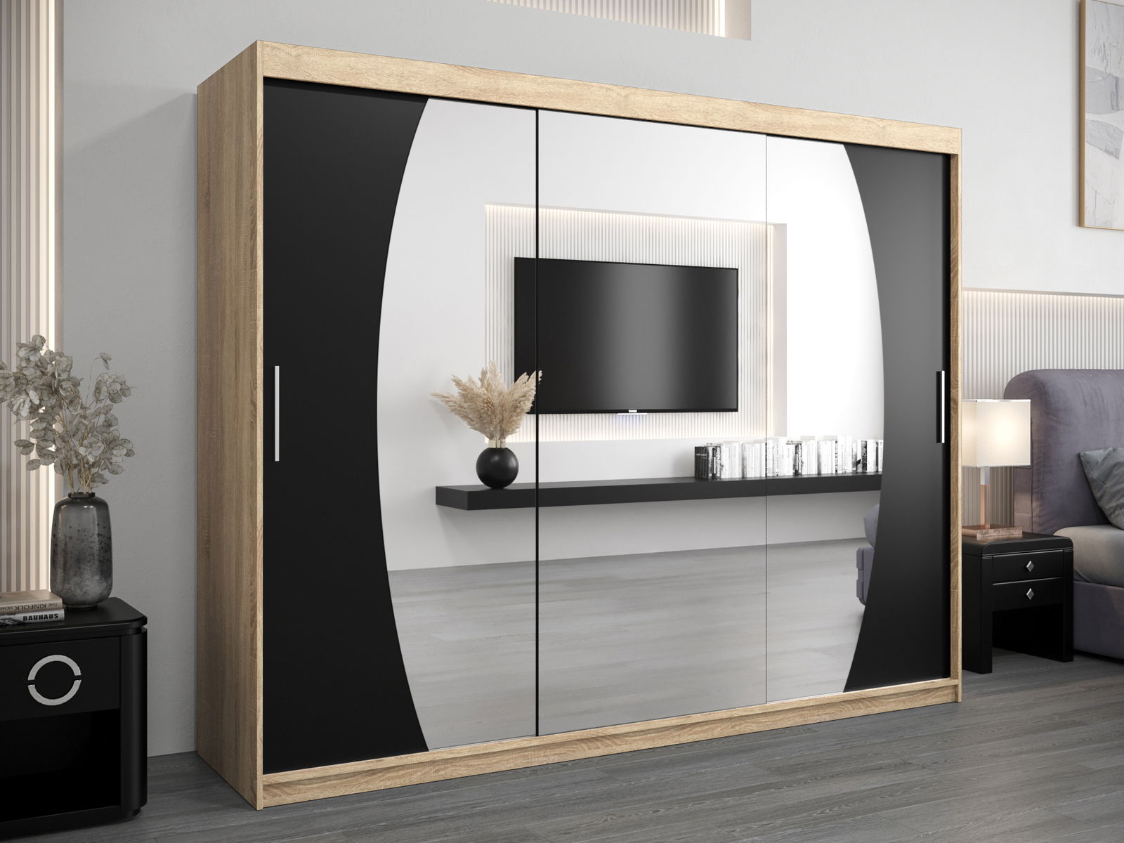 Ruhásszekrény 250 cm Eclipse (szonoma tölgy + matt fekete)
