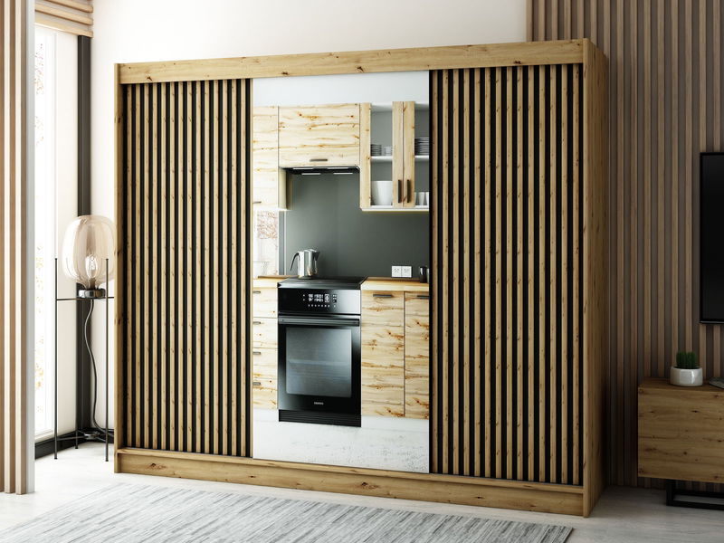 - Ruhásszekrény 250 cm Ladonna 2 (matt fekete) (tükörrel)