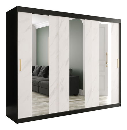 Ruhásszekrény 250 cm Marbelo P (matt fekete + fehér márvány)