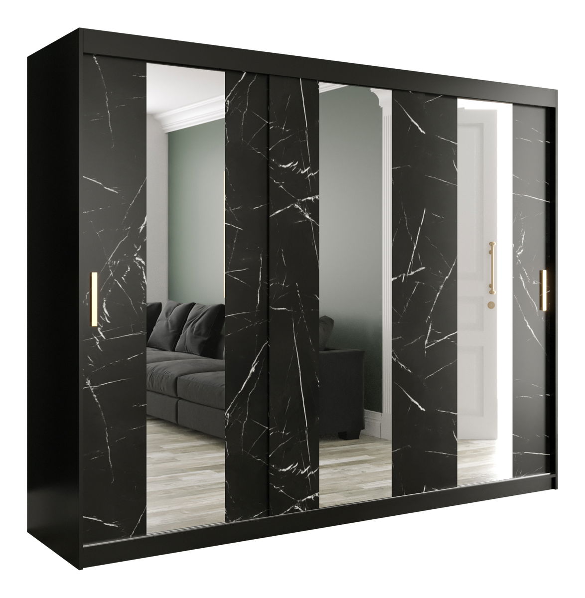 Ruhásszekrény 250 cm Marbelo P (matt fekete + fekete márvány)