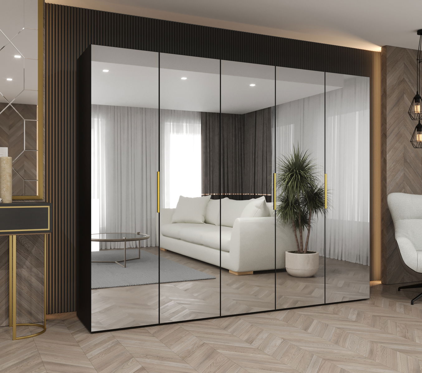 Ruhásszekrény 250 cm Mirabella 3 (fekete + arany)