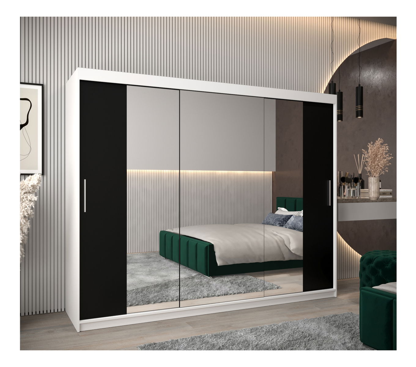 Ruhásszekrény 250 cm Toki 2 (matt fekete + matt fekete)