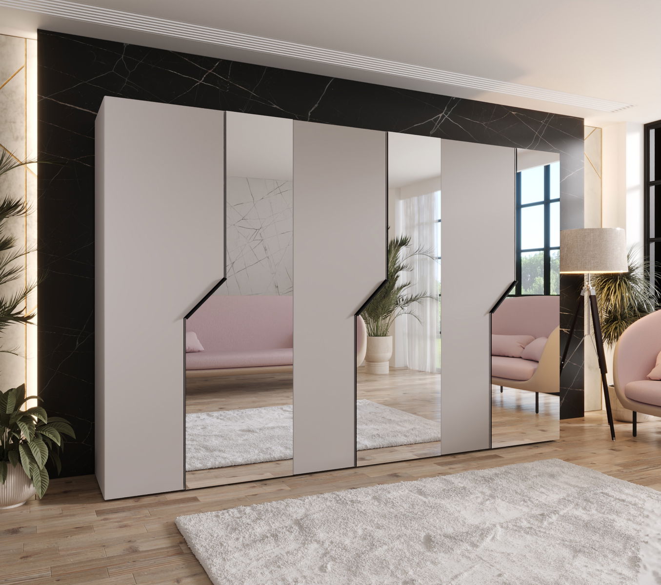 Ruhásszekrény Alaris 2 300 (kasmír + fekete) (tükörrel)
