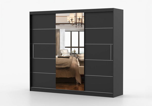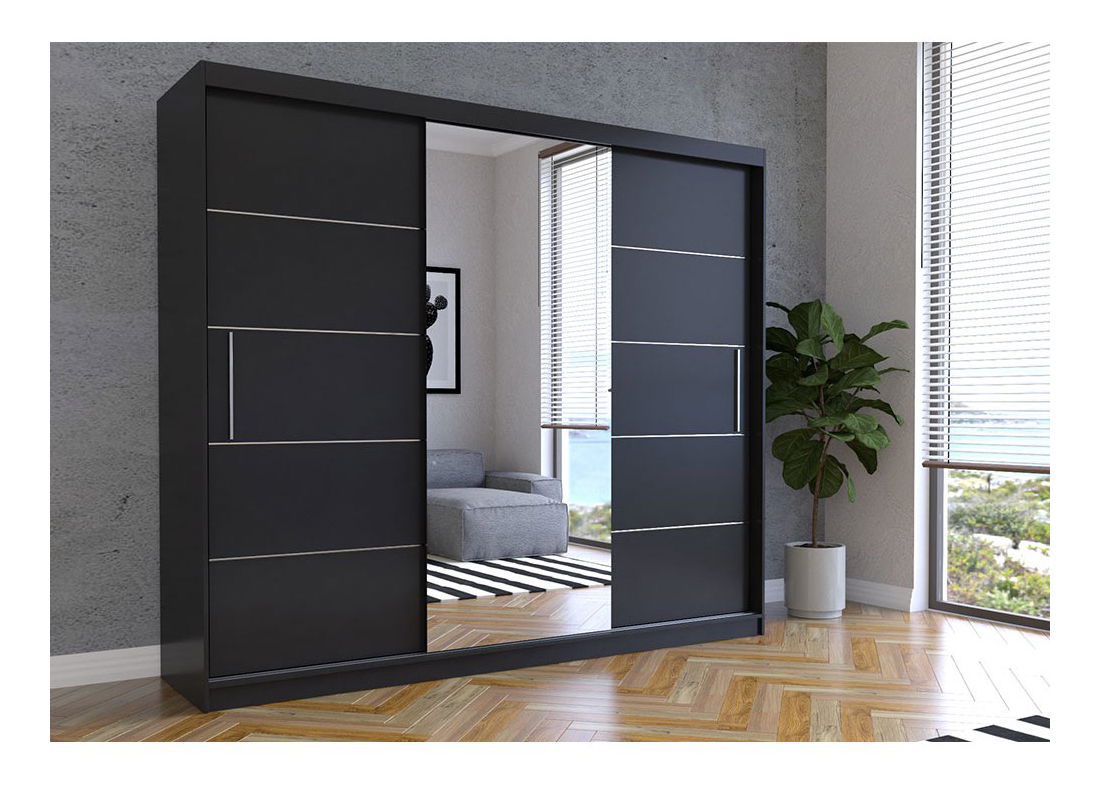 Ruhásszekrény Arrun (Fekete + Fekete + Tükör)