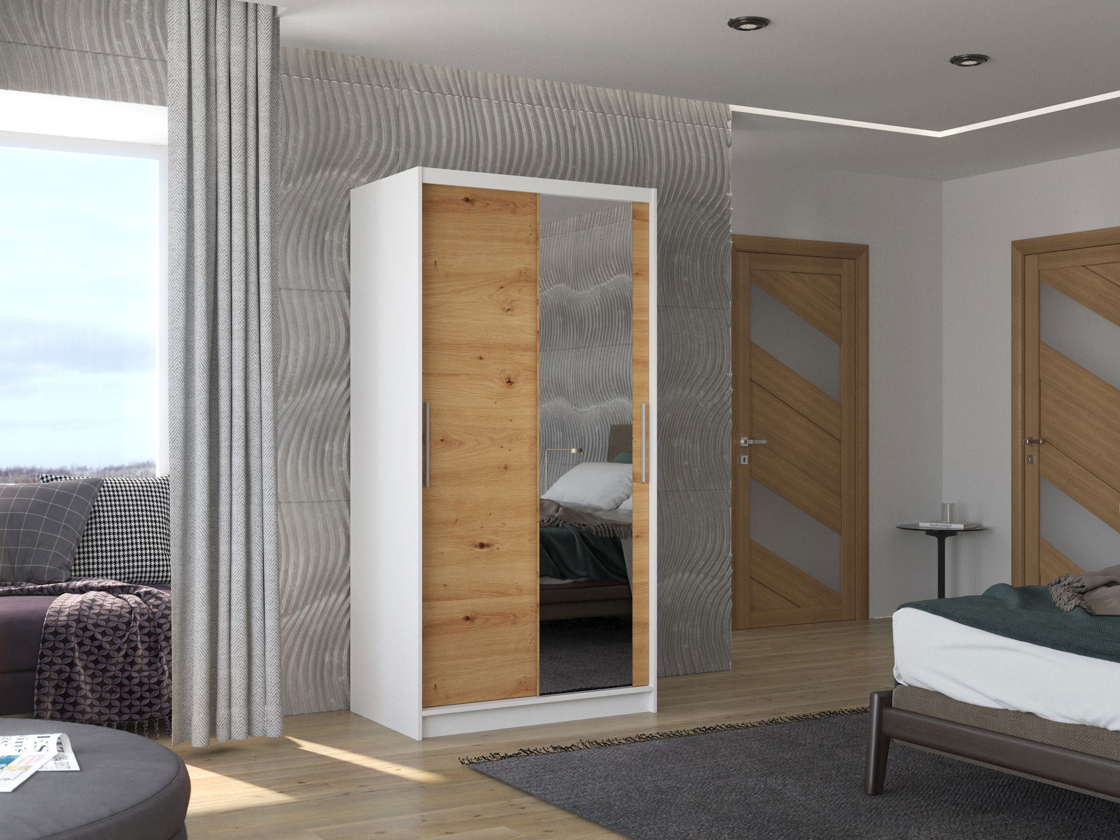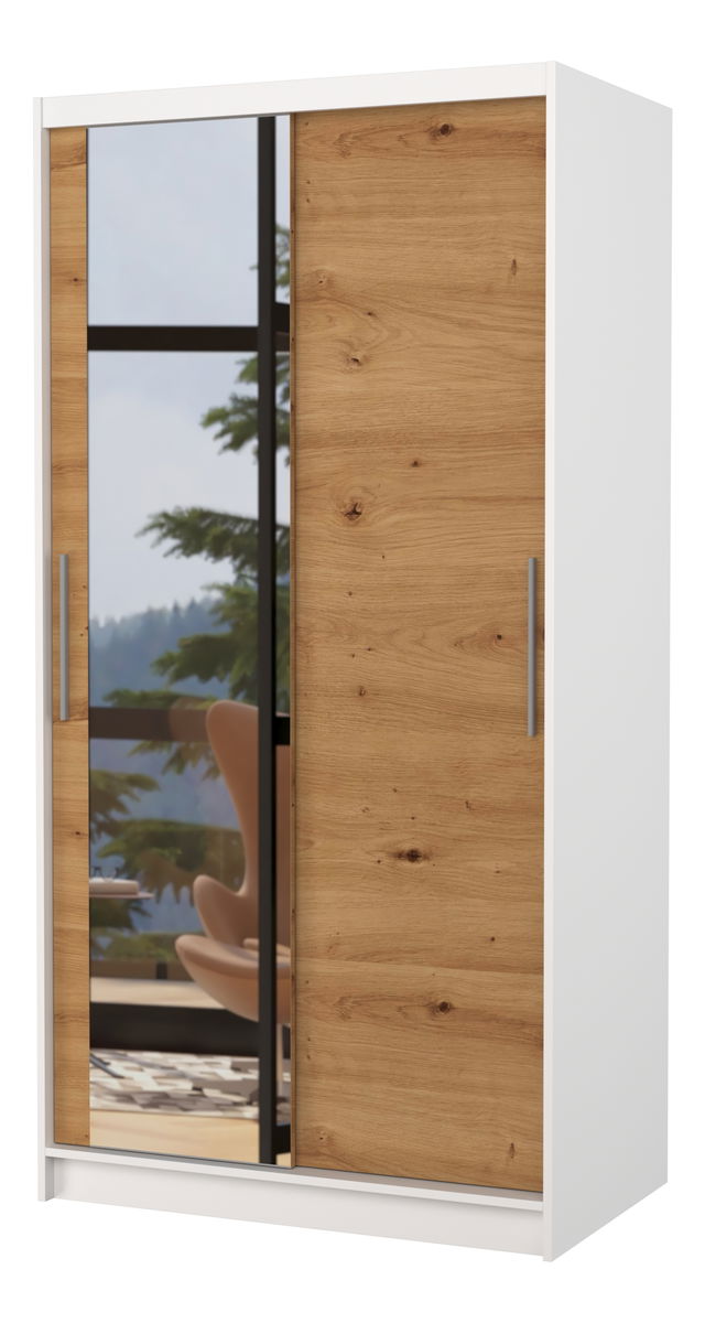 Ruhásszekrény Beral (fehér + artisan tölgy) (tükörrel)