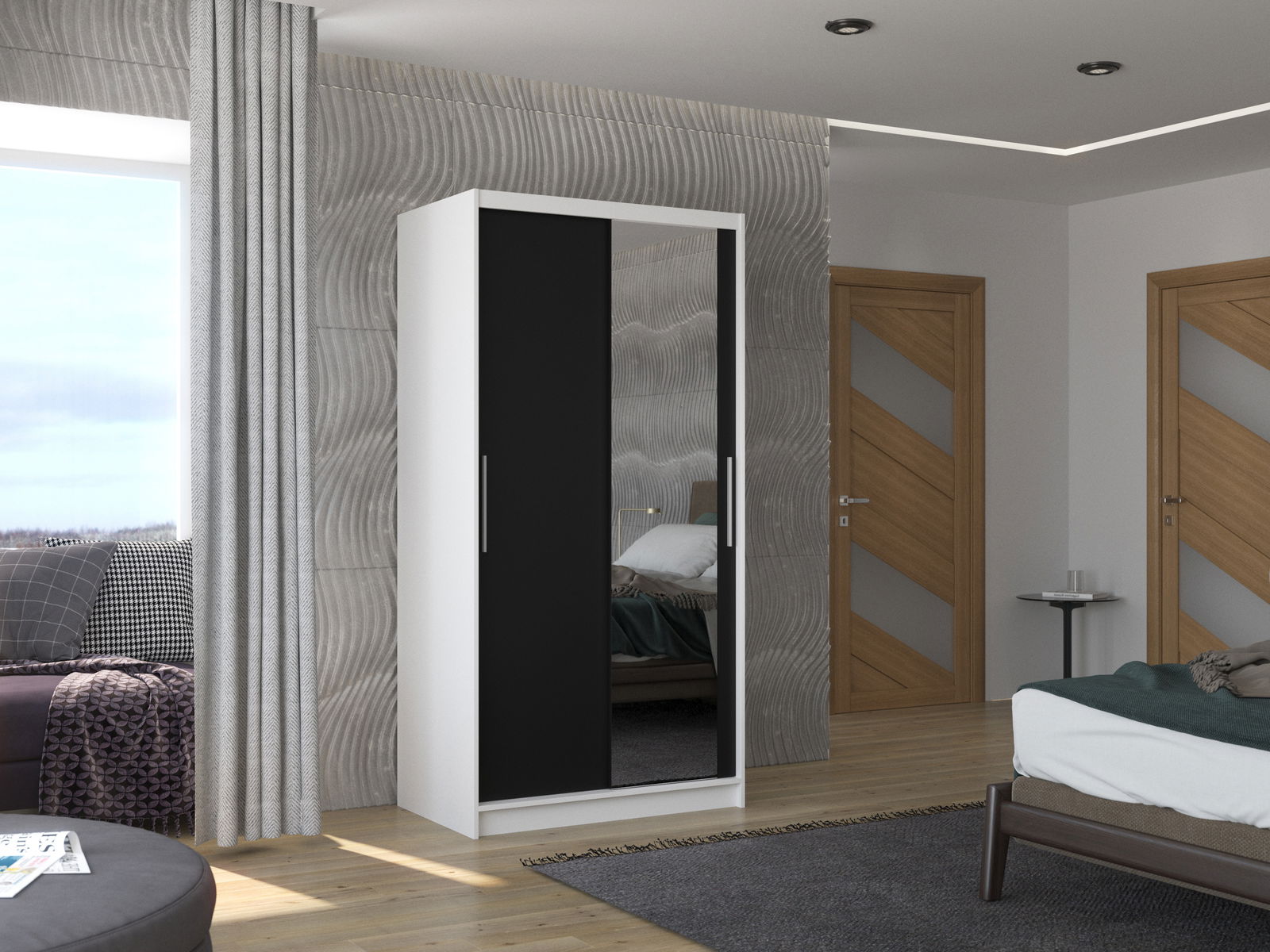 Ruhásszekrény Beral (fehér + fekete) (tükörrel)